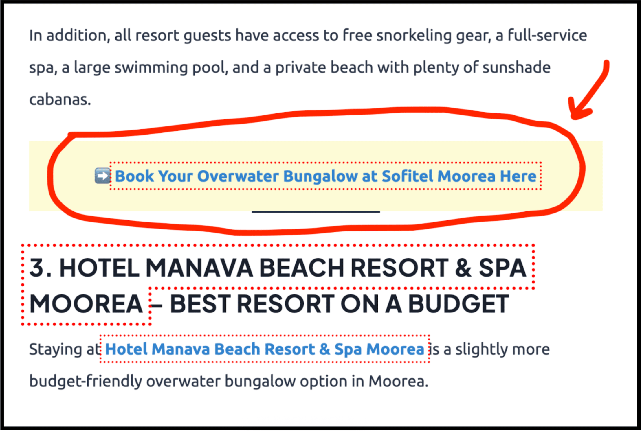 With a few clicks, you’ll know exactly which posts are carrying your income, and which ones are doing absolutely nothing for you. For me, that’s the power of this audit. Rather than guessing where to put your time, you’re using data to guide your focus. That’s hands down one of the smartest things you can do, whether you’re blogging or running any kind of business. 👉 And that’s the foundation of the full Affiliate Audit Series I created with Travelpayouts. [Read it here] 3 Quick Wins from the Affiliate Audit Here are three of the simplest fixes I’ve seen bloggers use to dramatically increase affiliate earnings: 1. Move your first affiliate link up. One of the most common mistakes bloggers make is accidentally hiding their affiliate links. You might have a reader land on your post ready to book, buy, or sign up for whatever you’re recommending, but if your first link is buried halfway down, you’ve probably lost them. Most readers won’t scroll past the top 10% of your content, so if your affiliate link doesn’t appear until the middle or end, you’re leaving clicks (and income) on the table. To fix this, place your most relevant affiliate link above the fold or at least within the first few paragraphs. Don’t be afraid to make it stand out; use formatting like buttons, boxes, or bold text, and pair it with a clear, action-driven call to action. Basically, if someone is ready to click, you don’t want them hunting for the next step. 2. Double down on proven winners. If one affiliate partner or widget is already converting in a post, take that as a sign! Add it to two or three related posts so more readers have the chance to click. This is one of the fastest ways to grow income without writing any new content. In longer posts, a single link usually isn’t enough. Most readers skim or only pay attention to the sections that interest them, so you need to repeat your key affiliate links in multiple spots. Place the main link in the intro, include it again when the product or brand is first mentioned, highlight it in a callout box, and repeat it near the end. If an affiliate is already working, make sure it gets seen more often and in more places. Simple! 3. Update old posts for seasonal search intent. If you’ve got a post that isn’t performing the way you want, you don’t need to scrap it. A quick update for seasonal keywords can give it new life and put it back in front of readers. So for example, instead of just Where to Stay in Paris, try: